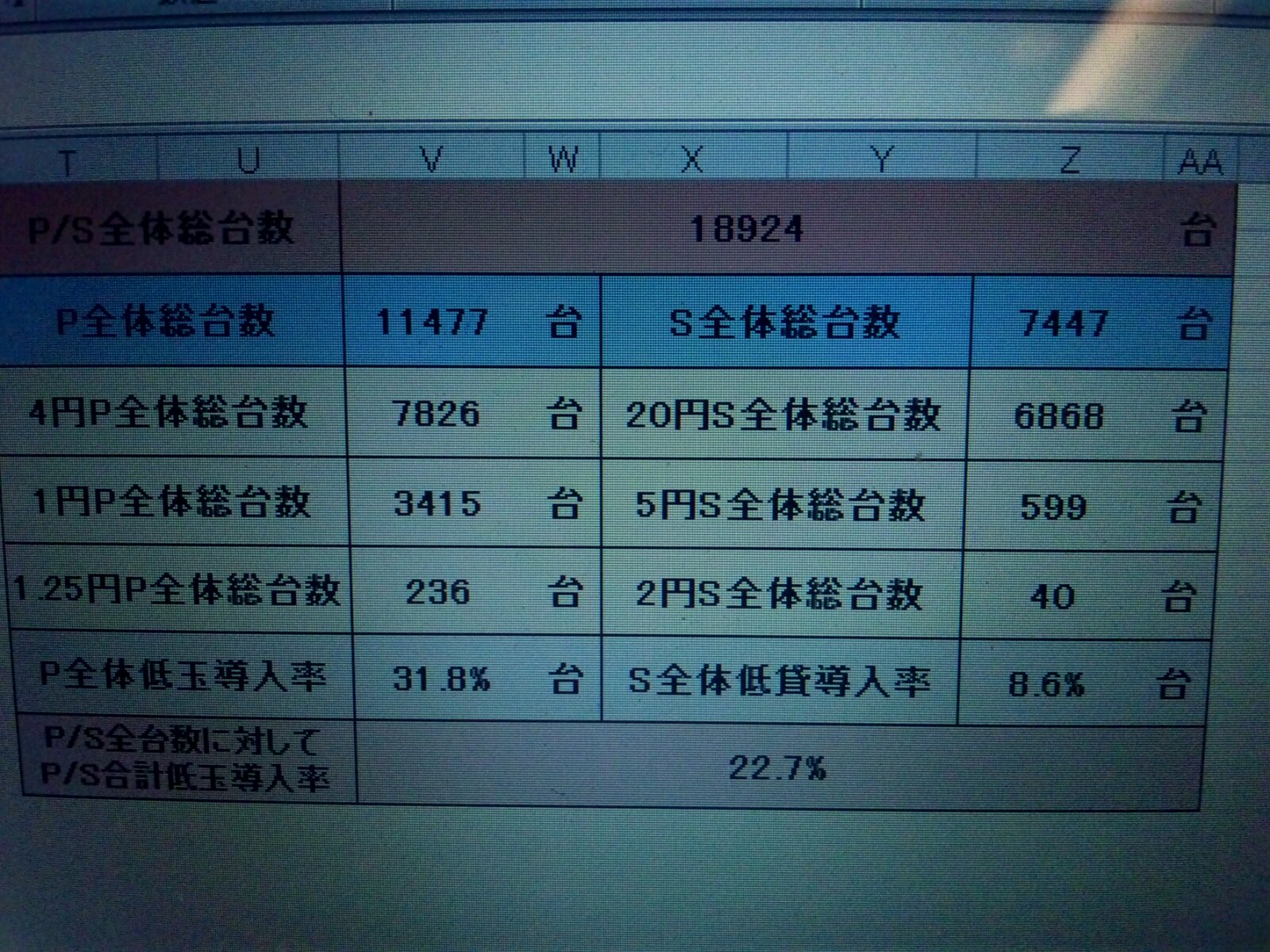 お店全体の低玉導入比率は平均 22.7%という結果に!