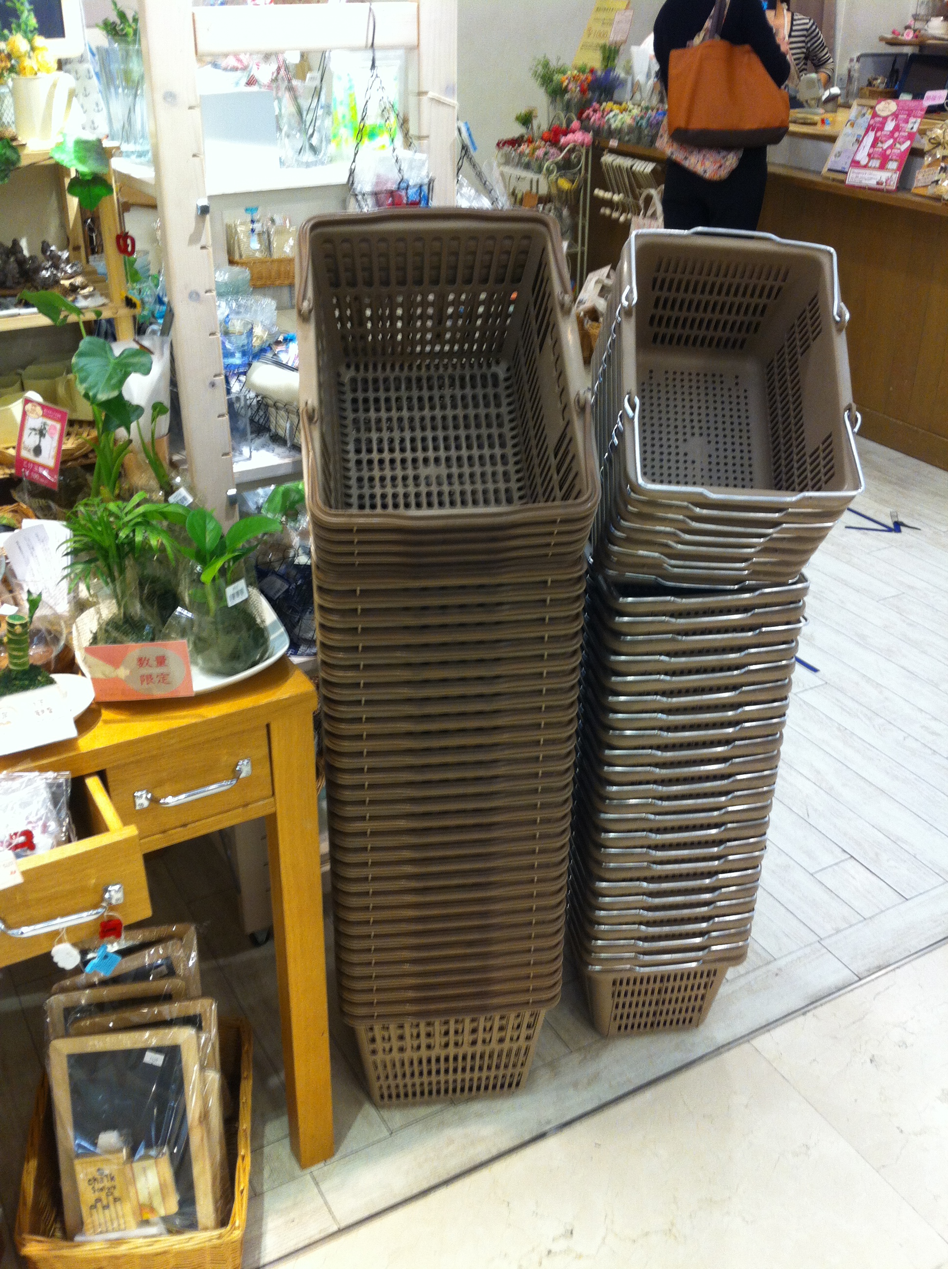 →上図は店頭の2種類の買い物カゴの設置ですが、