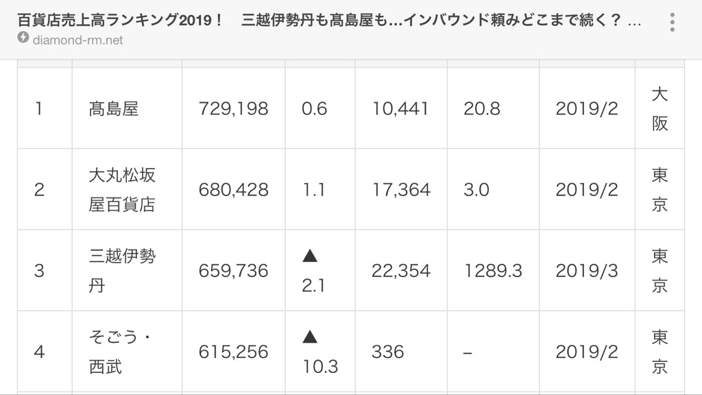 そうご・西武は百貨店売上ランキングで4位。